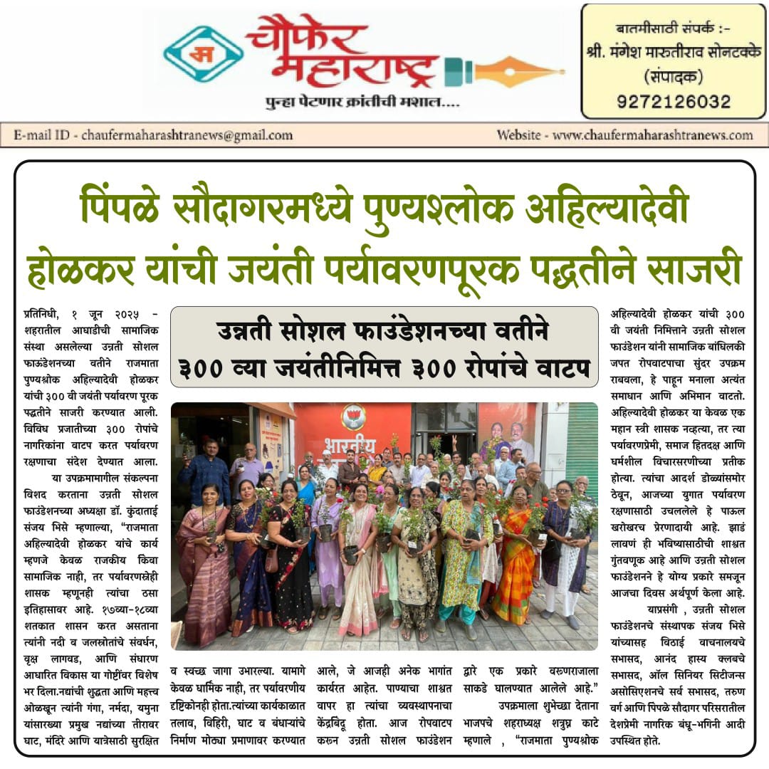 उन्नती सोशल फाउंडेशनतर्फे अटलबिहारी वाजपेयी यांची जयंती साजरी करण्यात आली