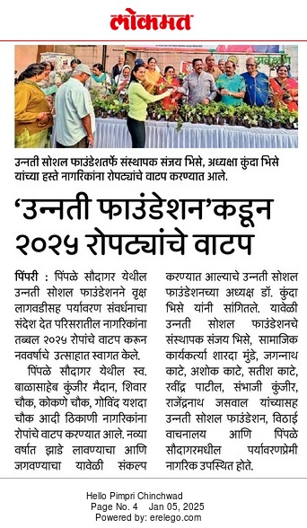 संस्थेच्या स्थापनेपासूनच पिंपळे सौदागर, रहाटणी परिसरासह संपूर्ण पिंपरी-चिंचवड महानगर क्षेत्रामध्ये उन्नती सोशल फाउंडेशन अत्यंत प्रभावी कार्य करत आहे.